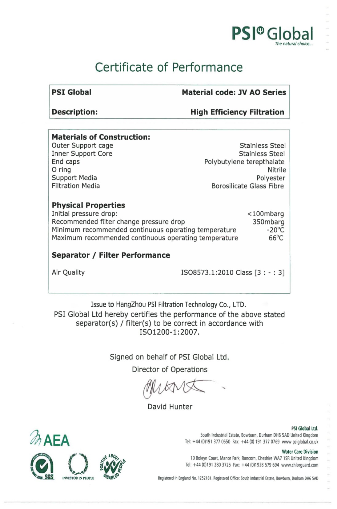 بهره گیری از مواد و متریال شرکت PSI GLOBAL در فیلترهای اولیه و ثانویه و درنتیجه دقت بالا در فیلترینگ