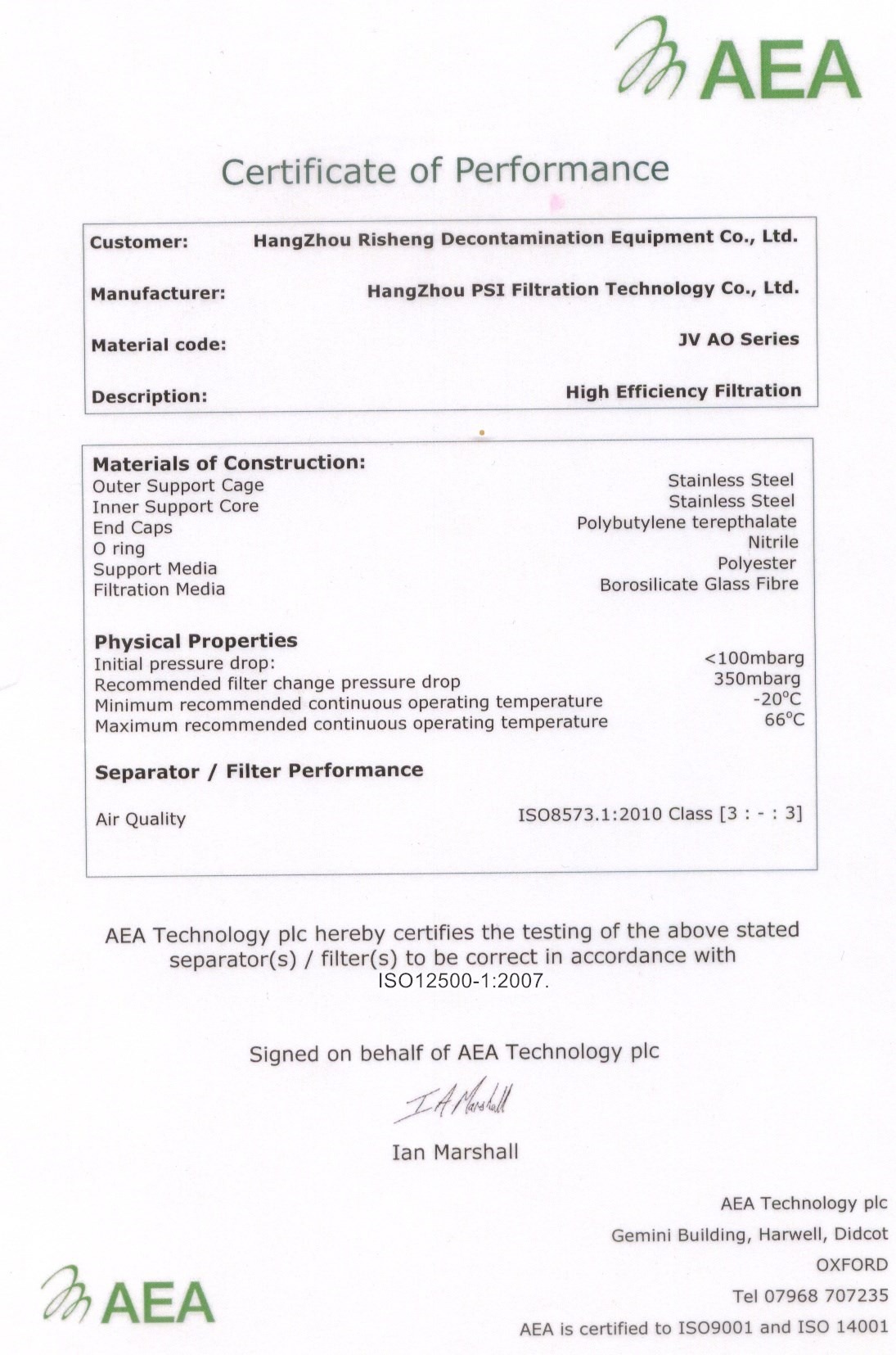 دو میکروفیلتر خارجی اولیه و ثانویه با دقت حذف ذرات 1 و 0.01 میکرون از برند PSI انگلستان